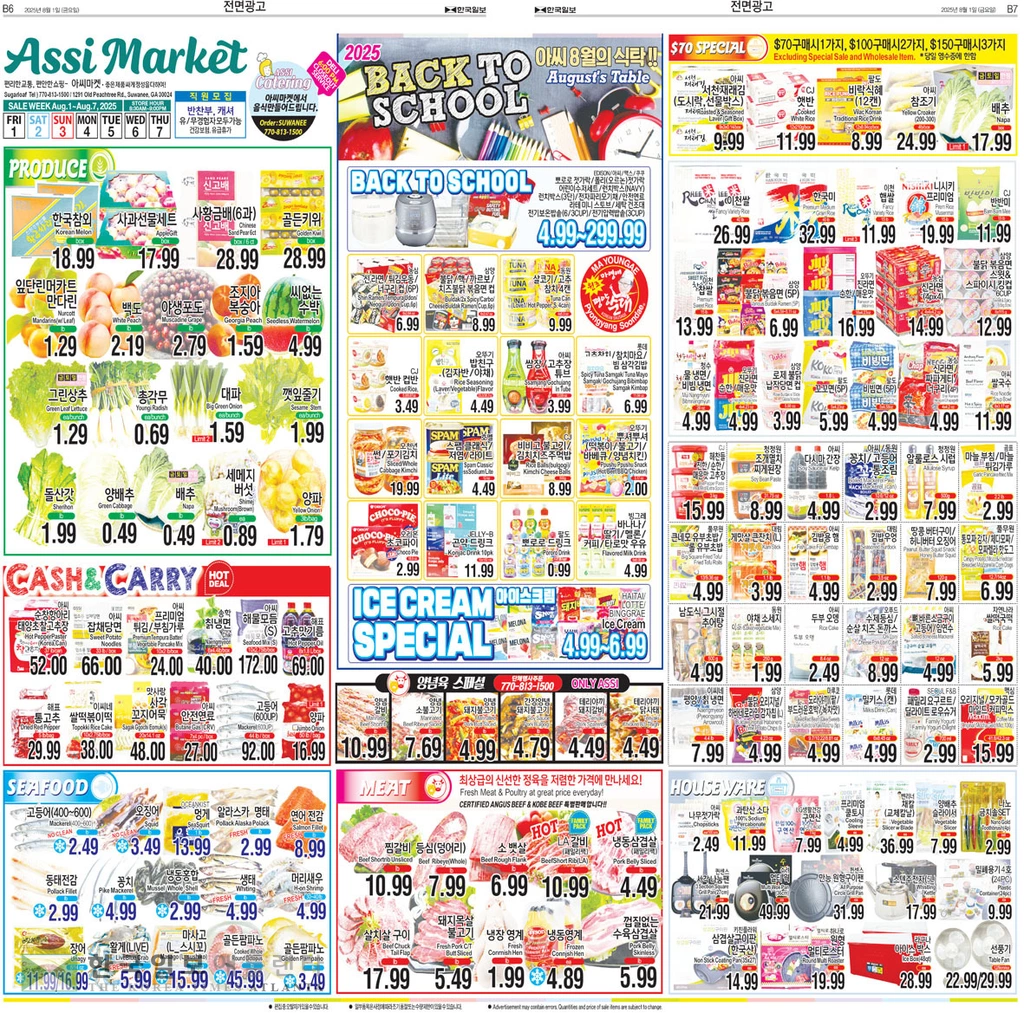 백투스쿨 특선 양념육으로 양념 갈비LB 10.99, 양념소불고기 LB 7.69, 양념돼지불고기LB 4.79, 간장양념 돼지불고기LB 4.79, 테리야끼닭사태 LB 3.99, 테리야끼 돼지갈비LB 4.99에 판매된다.