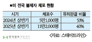 비영리매체 스테이트라인에 따르면 올해 1월20일부터 6월30일까지 ICE가 체포한 불체자는 약 11만2,000명으로 조 바이든 행정부 때인 2024년 상반기의 약 5만1,000명보다 크게 늘어난 것으로 조사됐다.