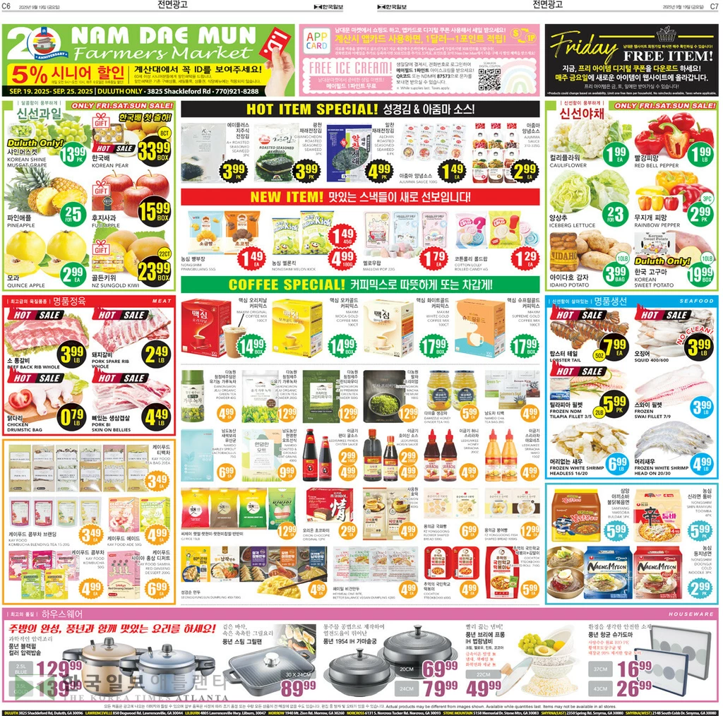 프로듀스 코너에서는 한국배 8CT/BOX 33.99, 골든키위 22CT/BOX 23.99, 골든파인애플EA 2 for 5.00, 후지사과BOX 15.99, 샤인머스켓(DULUTH ONLY!)PK 13.99, 모과 EA 2.99,컬리플라워EA 1.99, 빨강 피망LB 1.99, 한국고구마(소)10LB/BOX 19.99, 양상추EA 2 for 3.00, 무지개피망 3PC/PK 2.99, 아이다호 감자백10LB/BAG 3.99 에 공급된다.