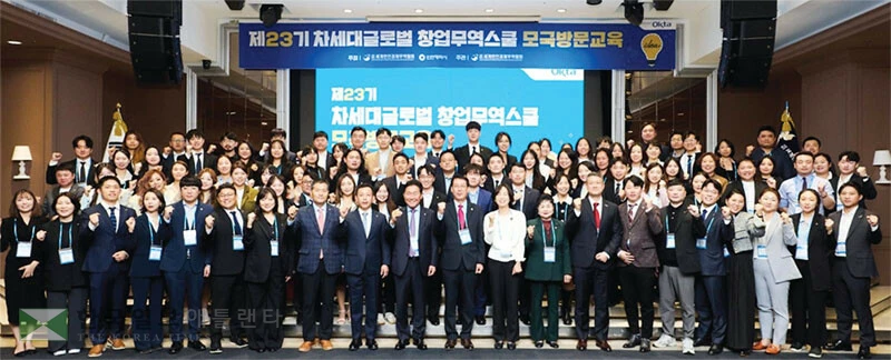 세계한인경제무역협회(월드 옥타·회장 박종범)가 지난 19일 인천 송도에 있는 라마다호텔에서 ‘2025 제23기 차세대 글로벌 창업무역스쿨 모국방문교육’ 개회식을 진행했다. 오는 24일까지 진행하는 이번 모국방문 교육에는 해외 21개국에 거주하는 재외동포 차세대 경제인 100여명이 참가했다. 이번 무역스쿨에서는 경제무역 이론 교육, 창업 실전 교육, 스타트업 피칭, 팀별 사업계획 발표 등이 진행된다. 박종범(왼쪽에서 열 번째) 회장이 모국방문교육을 진행한 뒤 참석자들과 함께 무역 한류 확산을 다짐하며 화이팅을 외치고 있다. [월드옥타 제공]