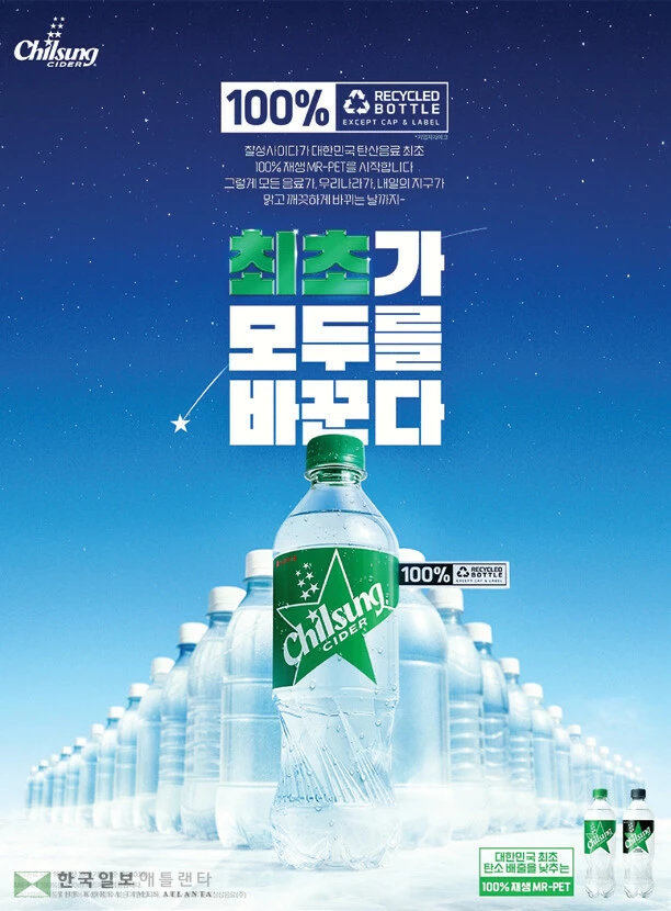 롯데칠성음료가 소수 제품에 이어 사이다 제품에도 친환경 플라스틱 페트병(PET)을 사용한다.