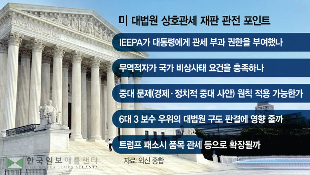 도널드 트럼프 대통령이 한국을 비롯해 일본·중국 등과 무역 협상을 타결한 가운데 5일 상호관세의 적법성을 다루는 미국 연방대법원의 첫 심리에 각국의 관심이 집중되고 있다.