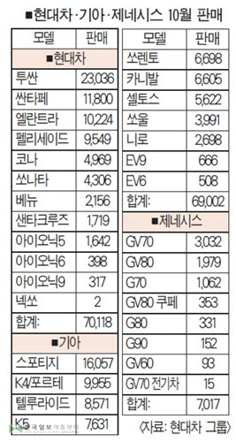한국차 10월 판매현황