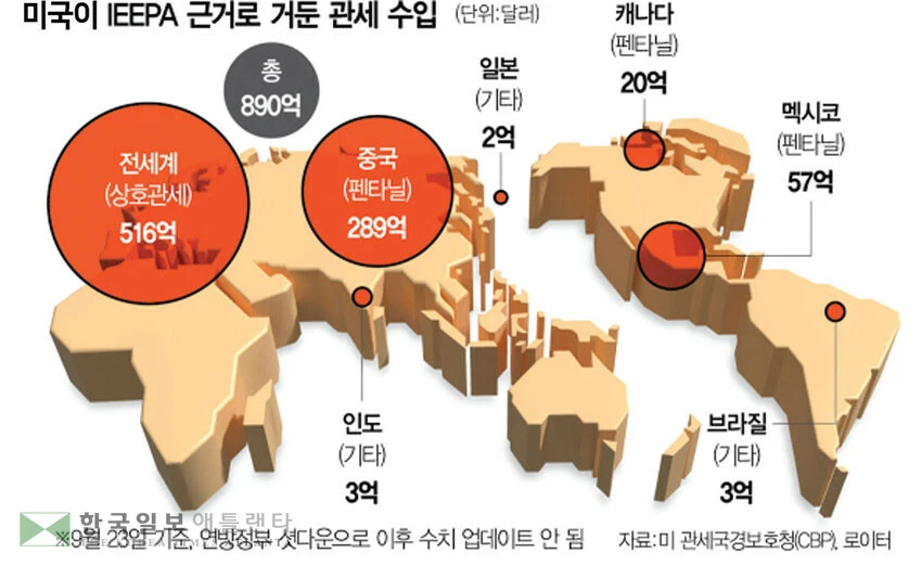 만약 대법원이 원고 승소 판결을 내릴 경우 금융시장은 대혼란에 빠질 것으로 보인다. 트럼프 행정부는 IEEPA에 근거해 9월 23일까지 약 890억달러의 상호관세 및 펜타닐 관세 수입을 거뒀다. 이를 환급하는 과정에서 미 국채시장은 물론 주식시장에 충격이 올 수 있다.