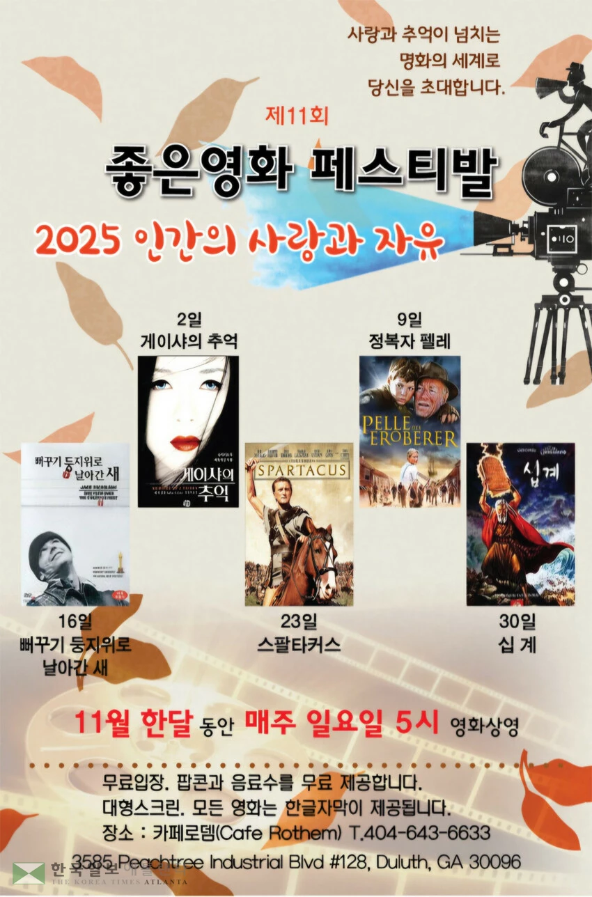 또한 영화 페스티벌 제임스 송 후원회장은 “이번 행사가 애틀랜타 한인 동포들에게 따뜻한 위로와 쉼의 시간이 되길 바란다”며 “매년 수준 높은 명작을 무료로 상영하며 지역 사회에 문화적 감동을 선사하는 카페 로뎀에 깊이 감사드린다”고 말했다.