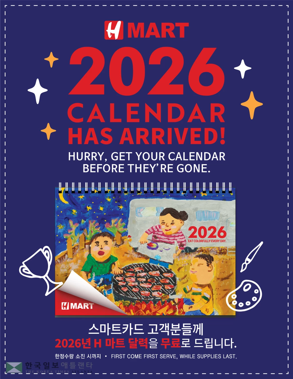 미주 최대 아시안 슈퍼마켓 체인 H 마트가 2026년 새해를 맞아 11월 16일(일)부터 조지아 지역 전 매장에서 무료 탁상용 달력 증정 이벤트를 진행한다.