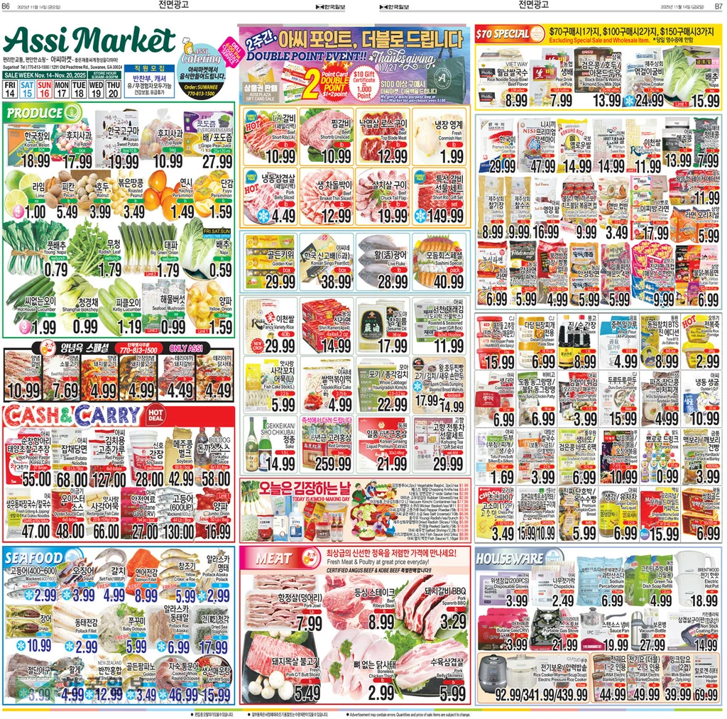 추수감사절 양념육 스페셜전에서는 양념 갈비LB 10.99, 양념소불고기LB 7.69, 양념돼지불고기LB 4.99, 간장양념 돼지불고기LB 4.99, 테리야끼닭사태 LB 4.49, 테리야끼 돼지갈비LB 4.49에 선보인다.