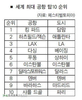 이밖에 중국 베이징 다싱, 상하이 푸둥, 터키 이스탄불, 텍사스 댈러스-포트워스, 덴버 등이 뒤를 이었다.
