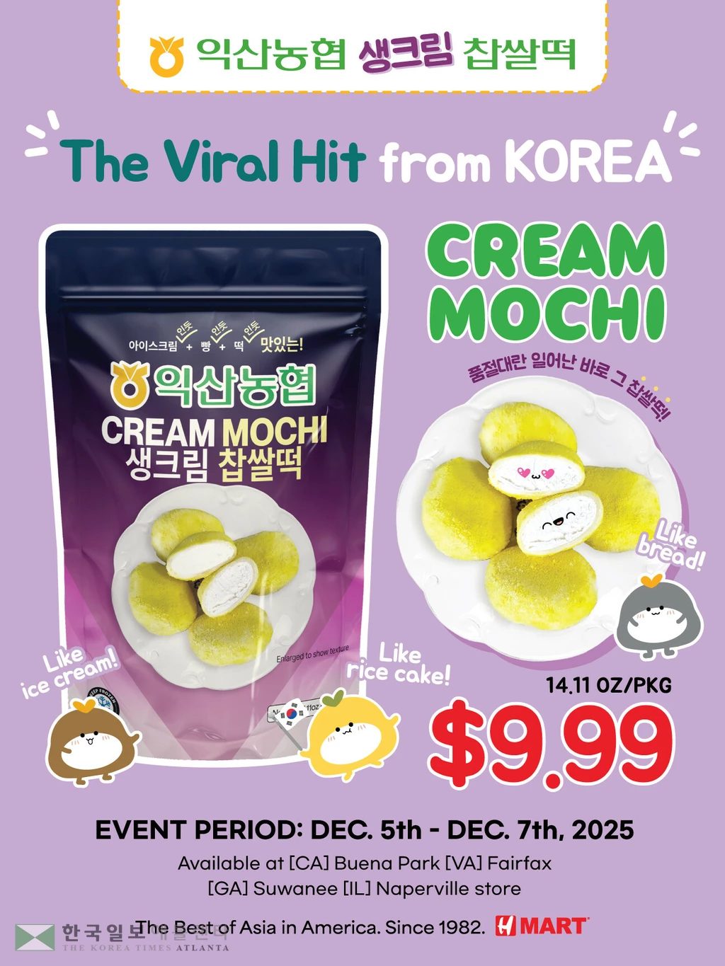 미주 최대 아시안 슈퍼마켓 체인인 H 마트가 ‘익산 농협 생크림 찹쌀떡 팝업 스토어’를 개최한다.