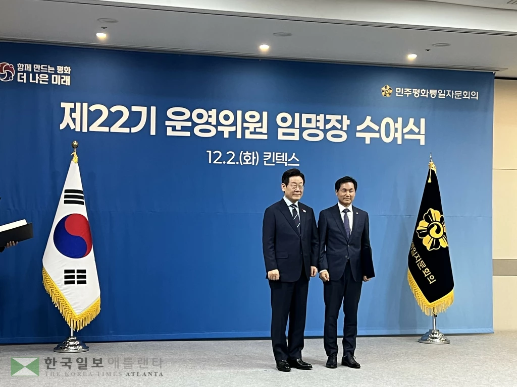 민주평화통일자문회의 제22기 운영위원으로 임명된 김형률 전 애틀랜타 평통 회장이 지난 2일 코양시 킨텍스에서 열린 제22기 민주평통 출범회의에서 이재명 대통령으로부터 임명장을 수여받았다.