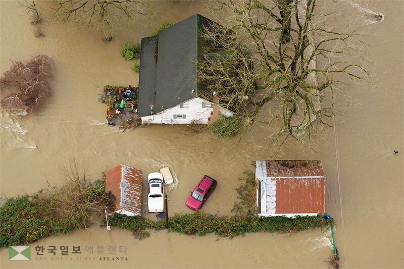 이른바 ‘대기의 강’ 현상이 서북부 지역을 강타하면서 워싱턴주 전역에 지난 9일부터 기록적 폭우가 쏟아져 강물이 범람하고 곳곳이 물에 잠기는 등 대홍수를 방불케 하는 피해가 발생했다. 이번 폭우는 11일까지 이어질 것으로 예보됐다. 워싱턴주 스노퀄미 강이 범람하면서 9일 폴시티 지역의 주택과 차량들이 온통 물에 잠겨 있다. [로이터]