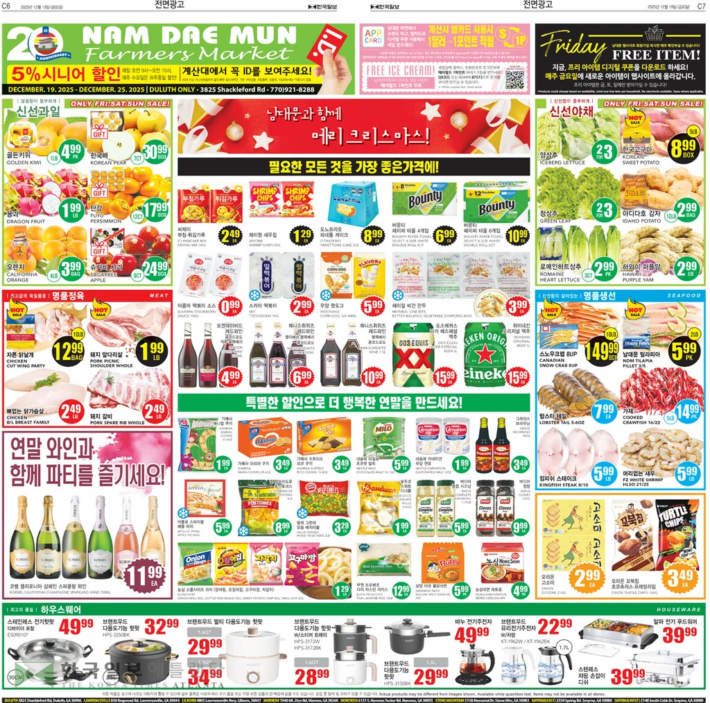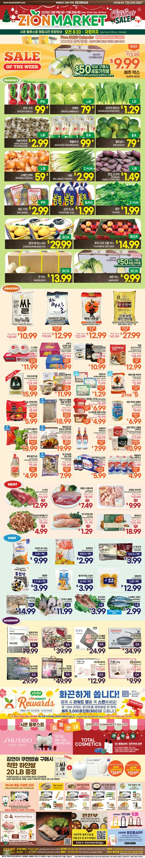 그로서리 코너에서는 착한 하얀쌀 20 LBS 10.99, 해태 대풍쌀15 LBS 12.99, 자연미인 찹쌀15 LBS 12.99, 만세 보령 황진 현미쌀20 LBS 27.99, CJ 햇반12 EA BOX 11.99, 농심 신라면 레드MULTI 5.99, 오뚜기 진라면 순한맛 싱글18 EA BOX 12.99,청정원 사골곰탕6 EA BOX 10.99, 동아 박카스디 (D)10 EA BOX 5.99, 백설 쇠고기 다시다1KG 12.99,유동 자연산 골뱅이400G 6.99,가도야 참기름 (LIMIT 2) 56OZ 15.99, 게세마리 피쉬소스24OZ 7.99, CJ 해찬들 순한맛 고추장1KG 6.99, 보령 재래 전장김 선물용5 SHEETS x 10 10.99, 대림수산 선물용 해날 지리멸치500 G 18.99, 롯데 환만식초1.8L 4.99에 선보인다.