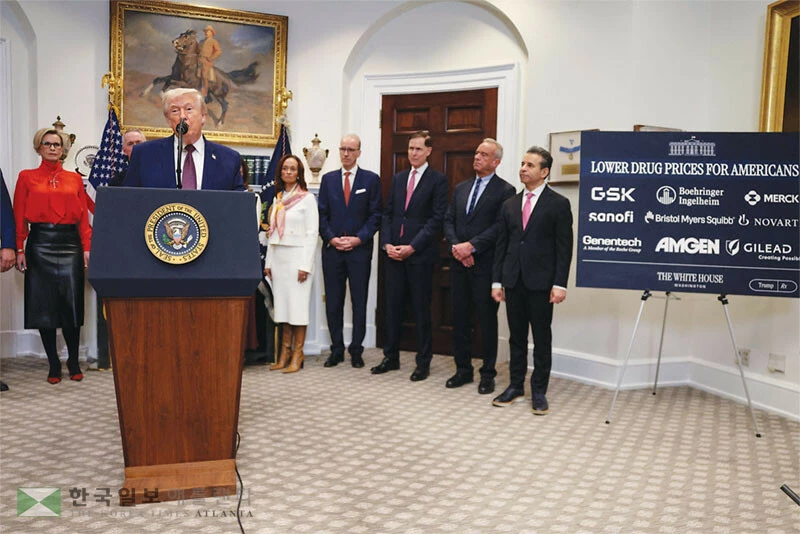 글로벌 제약사 9곳이 도널드 트럼프 행정부의 압박 속에 미국에 판매하는 주요 의약품 가격을 인하하기로 했다. 트럼프 대통령은 19일 백악관에서 이들 제약사 경영진이 참석한 가운데 “이들 기업은 자사의 주요 의약품을 최혜국(MFN) 수준으로 인하해 제공하기로 합의했다”고 발표했다. 백악관은 제2형 당뇨병, 류머티즘 관절염, 천식, B·C형 간염, 인간면역결핍바이러스(HIV), 특정 암 등 고비용 및 만성질환 치료제 가격이 인하될 예정이라고 밝혔다. [로이터]
