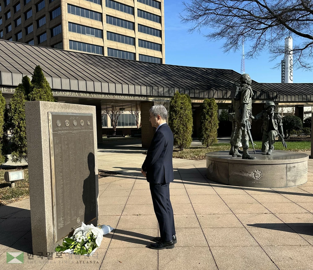 이준호 신임 주애틀랜타 총영사는 5일 애틀랜타시 다운타운 주청사 맞은 편에 위치한 한국전 참전 기념비를 방문했다. 이 총영사는 조지아주 한국전 참전용사들의 이름이 적힌 기념비 앞에서 그분들의 숭고한 희생을 기리고, 한국전쟁을 계기로 맺어진 한미동맹이 그간 발전해온 역사와 한-조지아 우호 협력 관계의 의미를 되새겼다. 박요셉 기자