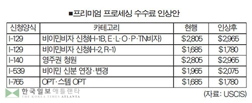 연방 이민서비스국(USCIS)이 H-1B 비자를 포함한 주요 이민 관련 신청서의 급행 처리 프리미엄 프로세싱(premium processing) 수수료를 전면 인상한다고 발표했다. USCIS는 지난 9일 발표한 보도자료를 통해 개정된 수수료가 오는 3월1일 이후 소인이 찍힌 신청서부터 적용된다고 밝혔다.