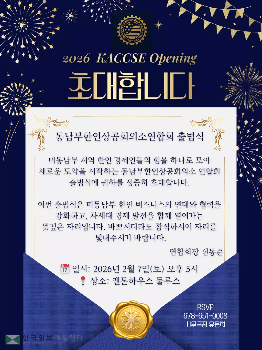 미 동남부 지역 한인 경제인들의 힘을 하나로 모아 도약을 시작하는 동남부한인상공회의소연합회가 내달 7일 오후 5시 둘루스 캔톤 하우스에서 출범식을 갖고 새 출발을 알린다.