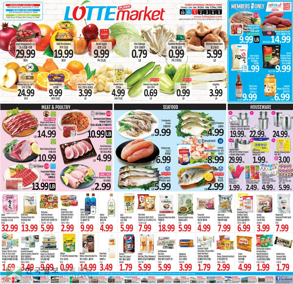 롯데 카드 소지 고객에게는 양념 LA갈비 LB 9.99/ PK 14.99, 한국 선물용 고구마 BOX 14.99, 이천쌀 15LB 11.99, 하림 즉석 삼계탕 9.99, 피쉬 소스 9.99, 담터 꿀유자차 6.99에 제공된다.