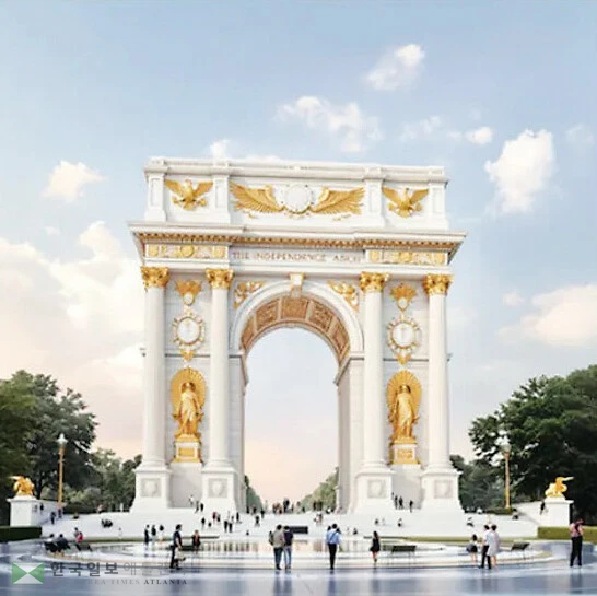 개선문은 미국 건국 250주년을 기념하는 트럼프 행정부 주요 프로젝트 중 하나로, 수도 워싱턴 DC의 명물인 링컨 기념관과 알링턴 국립묘지 사이 회전교차로 ‘메모리얼 서클’ 쪽에 세워질 전망이다. 트럼프 대통령은 지난해 123피트, 165피트 높이의 개선문 건립안을 검토했으나, 결국은 250피트 방안에 마음이 기울었다고 소식통들은 전했다.