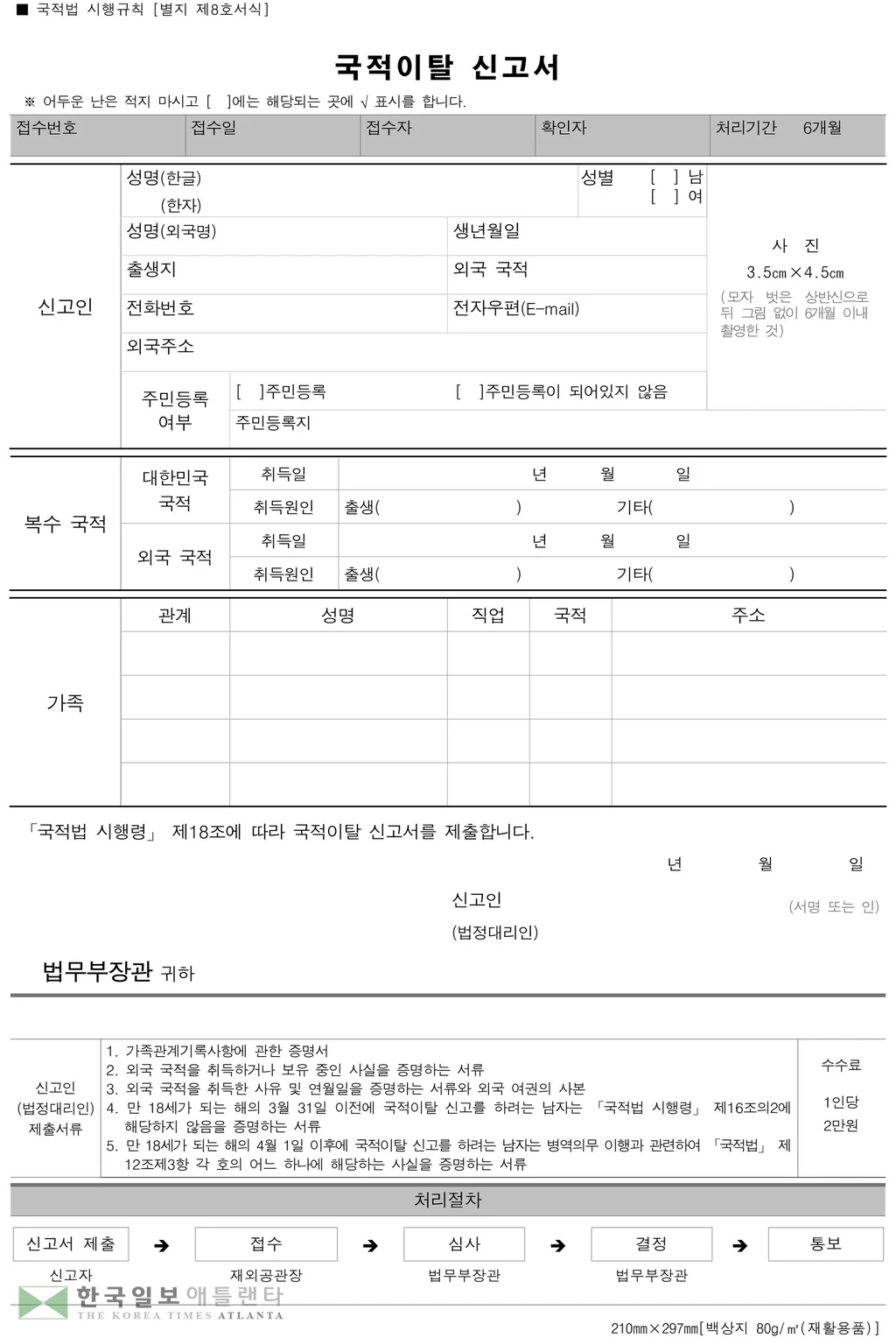 국적이탈신고에 관한 자세한 사항은 애틀랜타총영사관 홈페이지의 공지사항을 확인하면 된다.