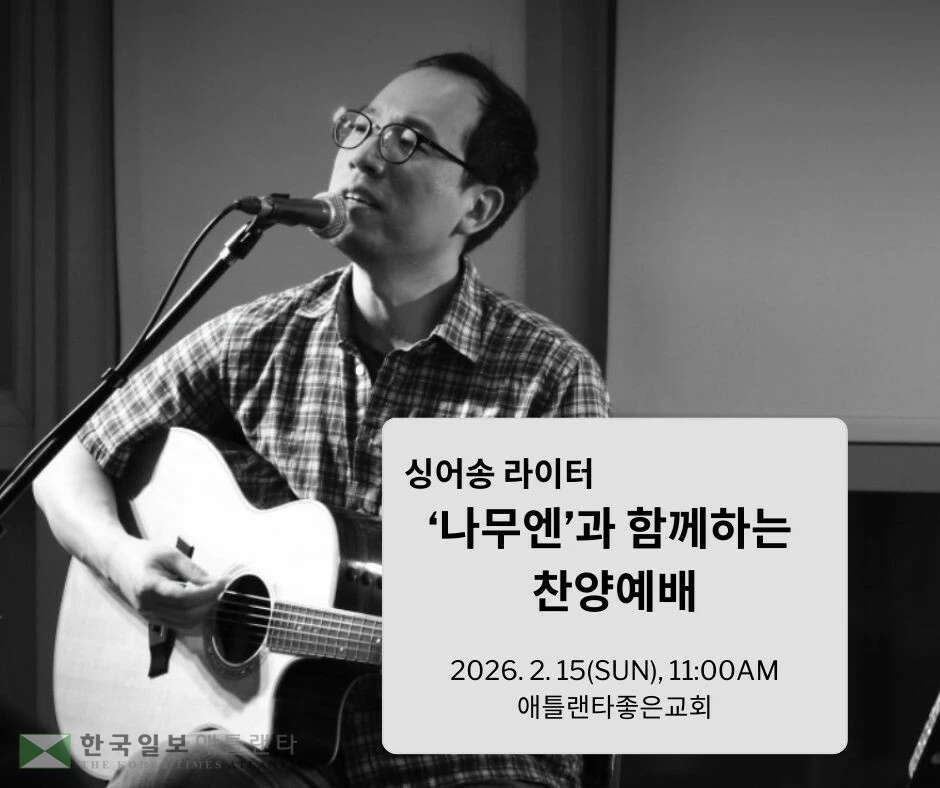 따뜻하고 서정적인 음색으로 많은 이들의 영혼을 어루만져 온 싱어송라이터 ‘나무엔’이 애틀랜타를 찾는다. 애틀랜타 좋은교회는 오는 2월 15일(주일) 오전 11시, 나무엔과 함께하는 특별 찬양 예배를 개최한다고 밝혔다.