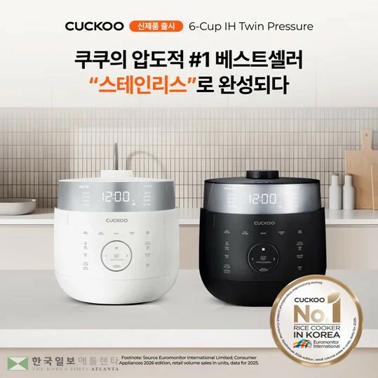 쿠쿠(CUCKOO)가 3중 스테인리스 내솥을 적용한 프리미엄 전기밥솥 ‘IH 트윈프레셔 LHTAR’를 미국 시장에 출시하며 프리미엄 가전 시장 공략을 강화했다.