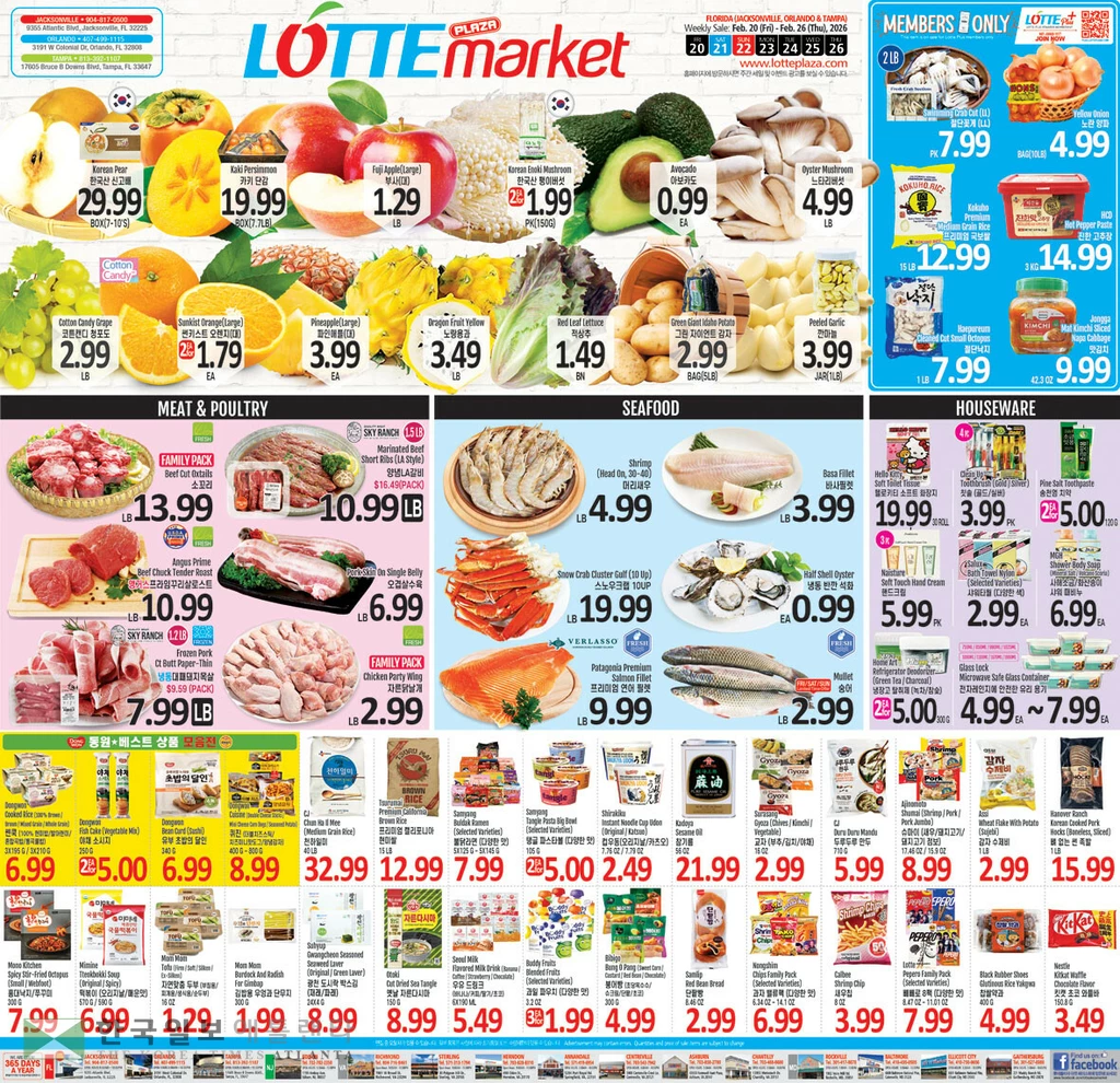 롯데카드 고객에게는 절단 꽃게 PK 7.99, 노란 양파 BAG 4.99, 프리미엄 국보쌀 15LB 12.99, 해찬들 진한 고추장 3KG 14.99, 절단낙지 1LB 7.99, 종가 맛김치 42.3OZ 9.99에 제공된다.