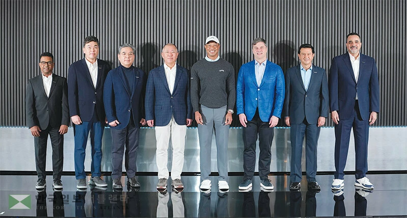 현대차의 프리미엄 브랜드인 제네시스가 미프로골프(PGA) 제네시스 인비테이셔널 대회 후원을 연장한다. 현대차그룹 정의선 회장은 17일 올해 대회가 열리는 리비에라 컨트리 클럽에서 현대차그룹이 이 대회의 타이틀 스폰서 후원을 2030년까지 연장한다고 밝혔다. 정의선 회장(왼쪽 세 번째부터)이 타이거 우즈, 현대차와 PGA 관계자들과 자리를 함께 했다. [제네시스 제공]