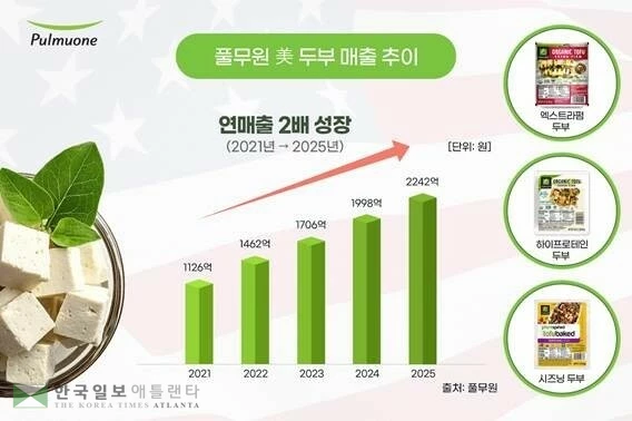 단백질 함량과 조리 편의성을 높인 '고단백 두부'(high protein tofu)의 성장세가 두드러졌다. 이 제품 매출은 지난 2021년 156억원에서 2025년 415억원으로 늘었다.