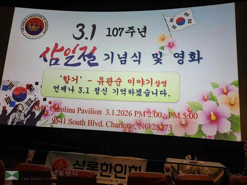 샬롯한인회(회장 남사라, 이사장 심재옥)는 지난 3월 1일(일) 오후 2시와 5시, AMC Carolina Pavilion 22에서 제107주년 3·1절 기념식을 엄숙히 거행하고 영화 ‘항거–유관순 이야기’ 상영회를 성황리에 마쳤다.