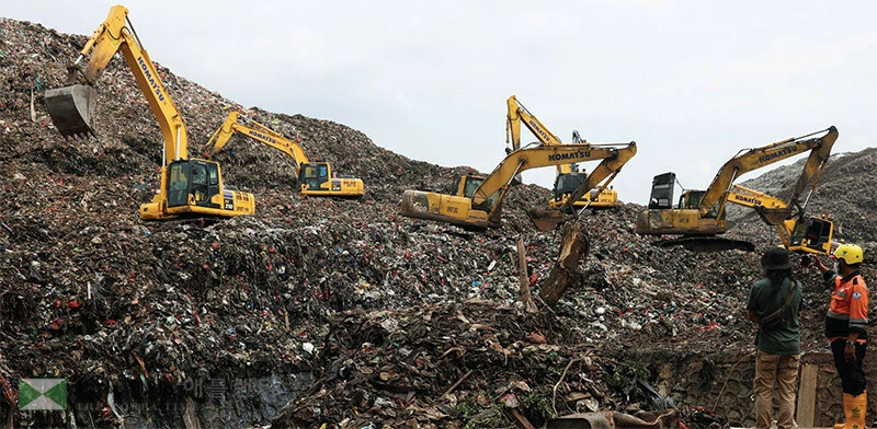 세계에서 가장 규모가 큰 인도네시아 폐기물 매립지에서 폭우로 쓰레기 더미가 무너져 7명이 숨졌다. 10일 AFP·AP 통신 등에 따르면 지난 8일 오후 2시30분께 인도네시아 수도 자카르타 외곽도시 브카시에 있는 반타르게방 매립지 4구역에서 쓰레기 더미가 붕괴했다. 이 사고로 매립지에서 작업하거나 쉬고 있던 쓰레기 수거 차량 운전기사와 노점 상인 등 7명이 숨졌다. 붕괴 사고 후 포크레인들이 정리 작업을 하고 있다. [로이터]