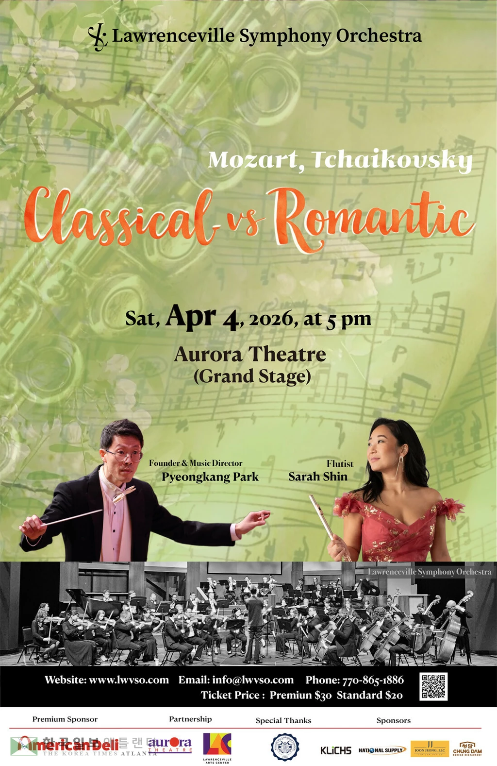 로렌스빌 심포니 오케스트라(LSO)가 오는 4월 4일(토) 오후 5시, 오로라 극장 그랜드 스테이지에서 Classical vs Romantic (고전 vs 낭만)이라는 주제로 정기연주회를 개최한다.