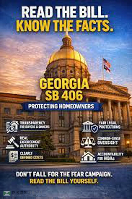 조지아주 내 주택 소유주들을 공포에 떨게 했던 주택소유주협회(HOA)의 무소불위 권력에 마침내 강력한 제동이 걸렸다. 조지아주 하원은 지난 화요일, HOA의 횡포를 막고 감시 체계를 강화하는 내용을 골자로 한 '상원 법안 406(SB 406)'을 찬성 155표, 반대 10표라는 압도적인 표차로 통과시켰다.