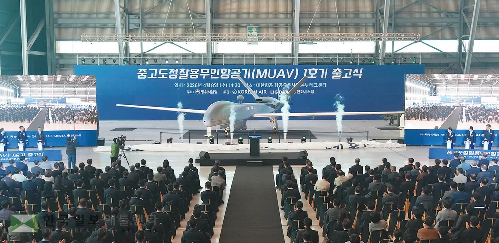 대한항공이 한국 최초의 전략급 무인항공기인 ‘중고도 정찰용 무인항공기’(MUAV) 양산을 통해 한국군의 전투력 강화와 K-방산의 글로벌 경쟁력 확보에 기여하고 있다. 대한항공은 8일 부산 대한항공 테크센터에서 ‘MUAV 양산 1호기 출고기념식’을 개최했다. 1호기는 고도 10km 이상의 상공을 날며 지상 목표물을 정찰할 수 있다. MUAV가 실전 배치되면, 적 전략 표적의 영상정보를 실시간 확인할 수 있어 신속한 작전지휘 능력이 확보되게 된다. <대한항공 제공>