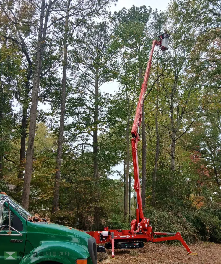 강스 트리 서비스의 또 다른 강점은 ‘깔끔한 마무리’다. 현장을 방문해 구석구석 꼼꼼하게 견적을 내는 것은 물론, 작업 후 나뭇가지 하나 남기지 않는 철저한 청소로 고객 만족도를 높이고 있다. 정식 사업자 보험 가입은 기본이며, 95ft 높이의 CMC Lift 장비를 통해 사람이 직접 오르기 힘든 사각지대까지 안전하게 처리한다.