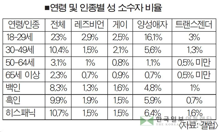 성인 10명 중 1명 ‘LGBTQ+’ (성 정체성)