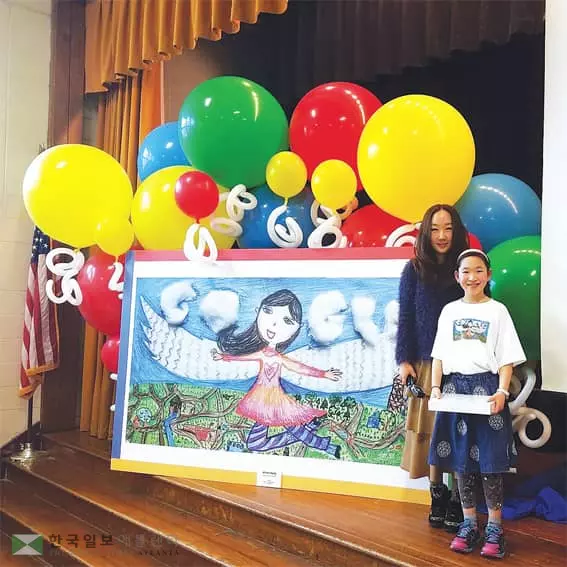 남부뉴저지통합한국학교에서 5학년 수업을 받을 정도로 한국어 공부에도 열심인 강양은 “오빠가 성탄 선물로 받은 ‘드론’을 보고 커다란 날개로 하늘을 높이 나는 새가 볼 수 있는 구름을 구글로 표현하고 싶었다”며 주 대표로 선정된 작품을 설명했다.