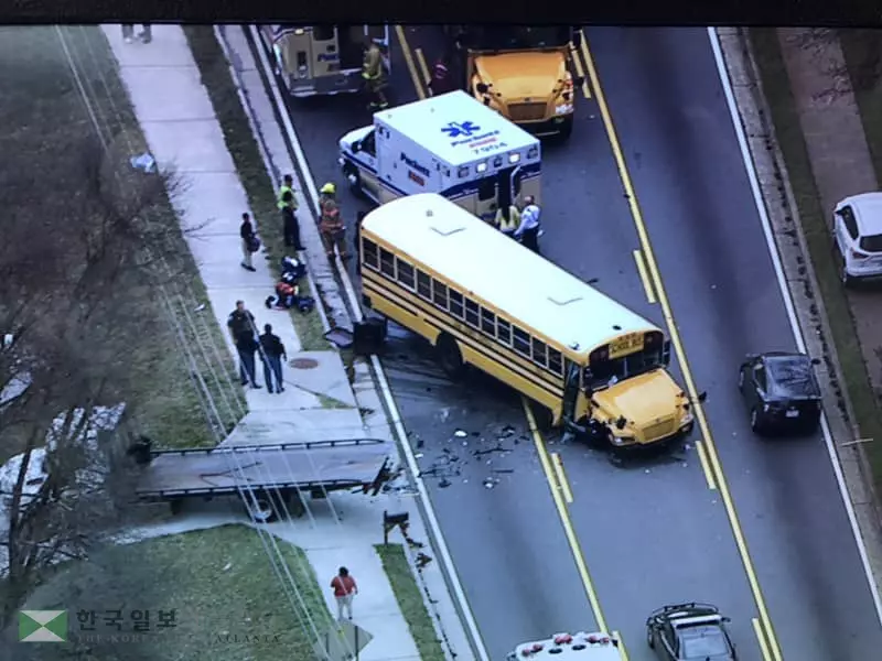 1일 오후 2시45분께 캅카운티 리버사이드 파크웨이에서 하교길 운행중이던 브리안트 초등학교 스쿨버스가 다른 곳에서 사고를 내고 뺑소니 치던 차량에 들이받치는 사고가 발생, 버스에 타고있던 어린이 2명과 성인 4명 등 6명이 다쳤다. 사고를 낸 용의자의 신상에 대해서는 알려지지 않았다. 경찰과 911 대원 등이 현장을 수습하고 있다.