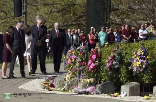 2007년 4월16일 발생했던 버지니아텍 참사가 10주년을 맞았다. 참사는 정신 병력이 있던 한인 대학생 조승희가 버지니아텍 캠퍼스내 강의실 문을 박차고 들어가 32명을 총으로 쏴 죽이고 자살했던 사건이다. 16일 총기 희생자 가족들이 이날 학교에 마련된 추모비 앞에서 고인의 명복을 기리고 있다.