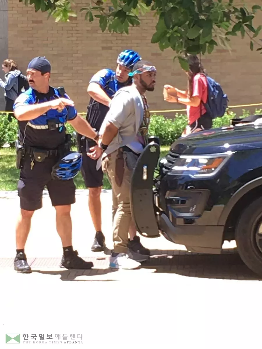 1일 오후 텍사스 대학교에서 한 학생이 나이프를 휘둘러 1명이 사망하고 3명이 중상을 입었다. 대학 경찰은 텍사스대에 재학중인 20살 켄드렉스 제이 와이트를 용의자로 체포해 범행동기를 조사 중이다. 경찰이 용의자를 연행하고 있다. 이인락 기자