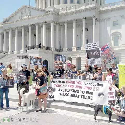 캠페인은 문재인 대통령의 미국 방문시기에 맞춰 지난달 29일부터 7월1일에 열렸다. 시위 참가자들은 한국정부가 개를 식용으로 하는 것을 막는 법을 제정해줄 것을 당부했다. <이창열 기자>