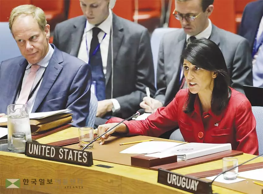 헤일리 대사는 또 중국 등 북한 교역국 간의 ‘교역제한’ 카드도 빼들었다. 그는 “유엔 제재를 위반해 북한과의 교역을 허용하는 나라, 심지어는 장려하는 나라들이 있다. 그러나 그런 일은 있을 수 없다”고 언급, 중국의 대북한 제재에 대한 미온적인 태도를 비난했다.