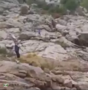 급류로 인해 물이 불어나자 한 남성이 구조를 요청하고 있다.<사진=유투브>