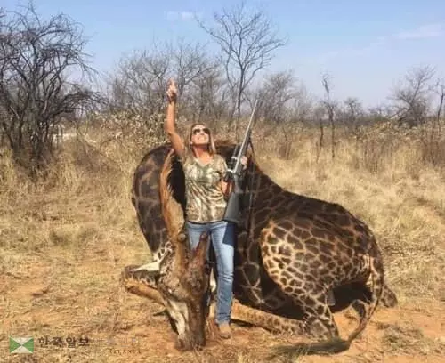 한 미국인 여성이 기린 사냥을 소셜미디어로 자랑했다가 온라인에서 몰매를 맞고 있다.