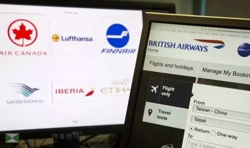 '타이완, 차이나'로 표시된 브리티시항공 웹사이트
