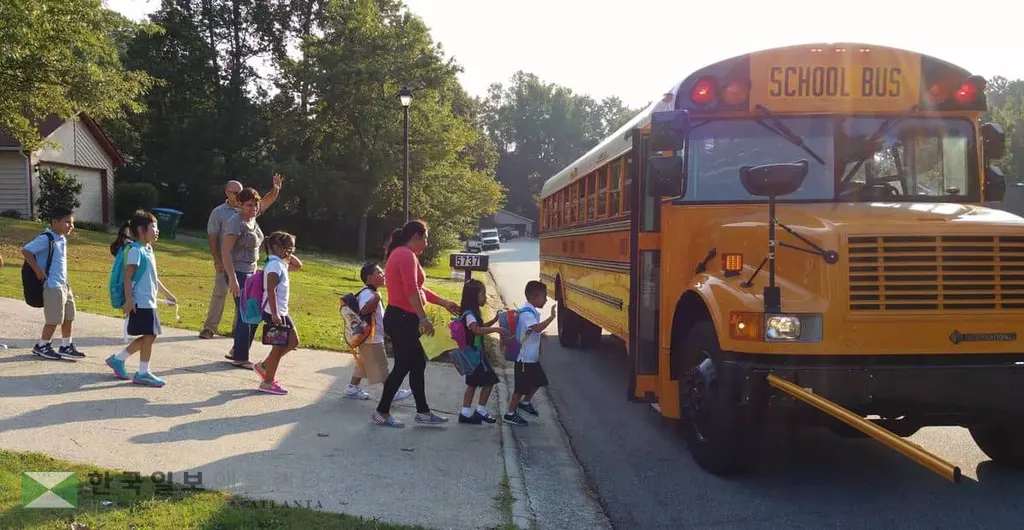 이번주부터 메트로 애틀랜타 각급학교들이 순차적으로 개학에 들어간다. 한 주택단지에서 학생들이 스쿨버스를 타고 있다. <사진=독자제공>