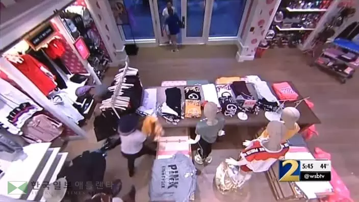 여성 절도범들이 속옷 매장에서 물건을 훔쳐 달아다는 모습<사진=wsb-tv 캡쳐>
