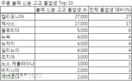 조지아는 매년 3,000여명의 불체 신분 고교생들이 졸업해 전체 졸업생의 3%를 차지해 일곱번째를 기록했다.