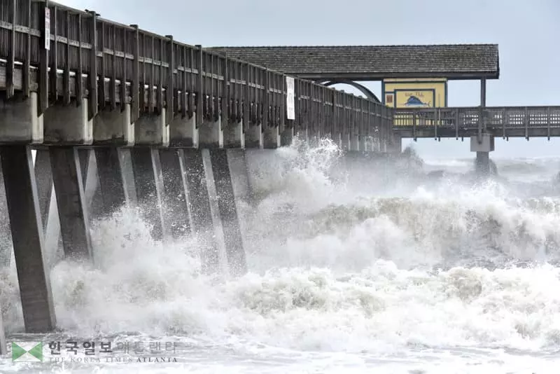 허리케인 '도리안'이 접근해 옴에 4일 브라이언 켐프 주지사는 조지아 9개 카운티에 추가로 비상사태를 선포했다. 이로써 모두 21개 카운티에 비상사태가 선포됐다. 타이비 아일랜드의 챈텀 카운티 등 95번 고속도로 동쪽지역 주민들에게는 이미 대피령이 내려졌다. 4일 3피트에서 5피트의 파고가 일고 있는 타이비 아일랜드 해안지역 모습<사진=AJC>