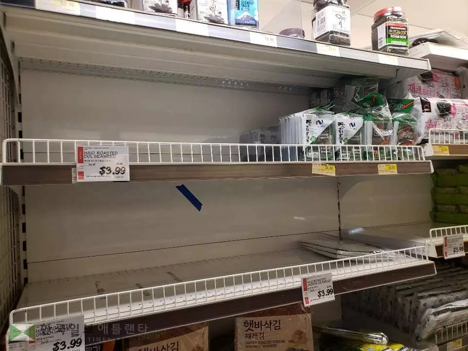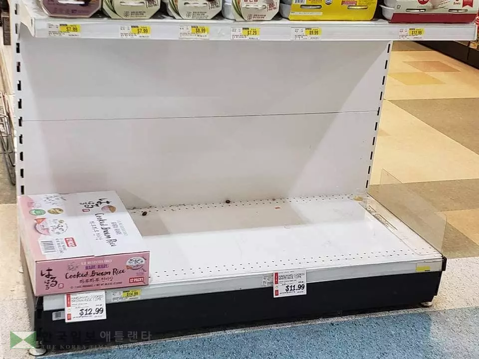 둘루스 H-마트를 찾은 한인 박모씨는 “평소 수북이 쌓여있던 쌀이나 라면 등의 판매대가 하루 아침에 텅텅 비어 있는 모습을 보자 괜히 불안한 기분이 들었다”며 “주변에서도 어차피 쌀, 물, 라면 등의 생필품은 미리 사두어도 별 문제가 없다며 사재기를 조장하는 분위기”라고 말했다.