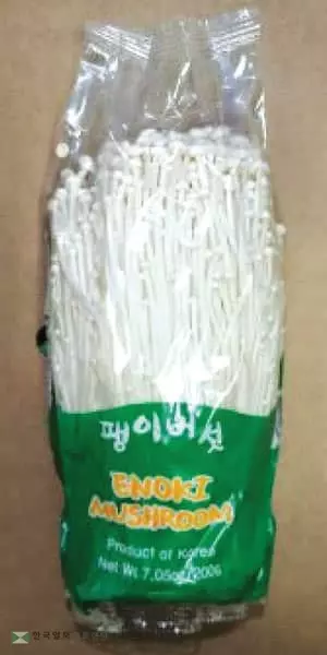 리콜된 팽이버섯 제품은 7.05 온스의 200g 단위로 포장돼 있으며, 포장 겉면에 ‘한국산’(Product of Korea)으로 표시되어 있다.